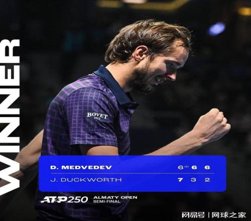就在刚刚,ATP250阿拉木图站首场男单半决赛结束了最后的争夺,2号种子梅德韦杰夫经过三盘激战,最终以6-7(8)6-3 6-2逆转从资格赛突围的澳大利亚黑马球员达克沃斯,职业生涯第40次闯入巡回赛决赛。这场胜利不仅让梅德韦杰夫本赛季第二次跻身决赛,也使他成为1990年后出生选手中首位达成ATP巡回赛40次决赛纪录的球员。
