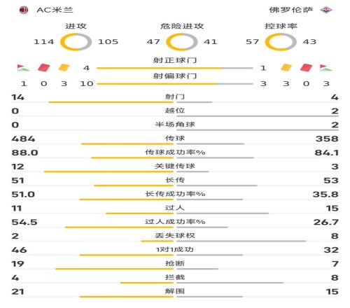 86’吉梅内斯禁区被拉倒,莱奥主罚点球命中,米兰2-1佛罗伦萨