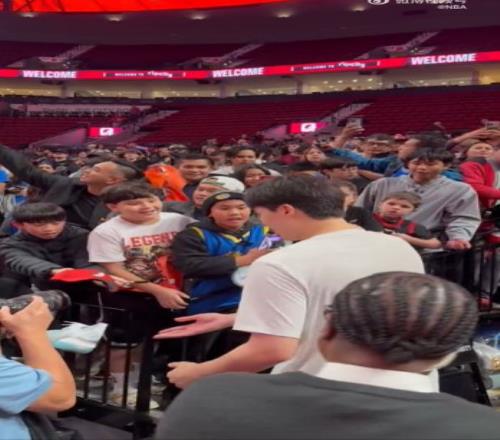 NBA官方社交媒体晒视频,赛前不少球迷在通道等待杨瀚森。