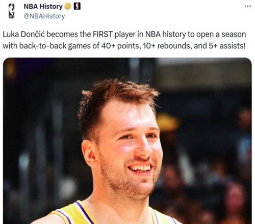 继首秀轰下40+得分表现后,东契奇次战又爆砍49+11+8全能表现,一战狂刷7大纪录!比起东契奇这5点更该让湖人开心。
