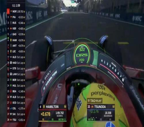 SQ1首轮飞驰圈结束,拉塞尔来到榜首,维斯塔潘&加斯利排在二三;