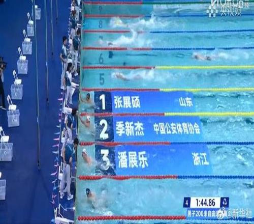 张展硕赢得全运会男子200米自由泳冠军
