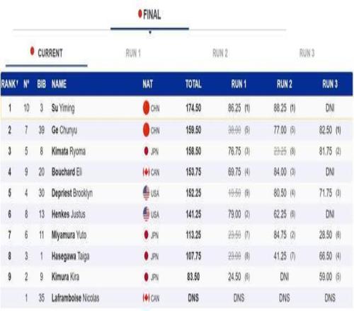 第一跳,苏翊鸣1980惊艳落地,得到86.25分。第二跳,凭借完美发挥,他拿到88.25分。最终,苏翊鸣以174.50分的总成绩强势夺冠。另一位中国选手葛春宇以159.50分收获银牌。