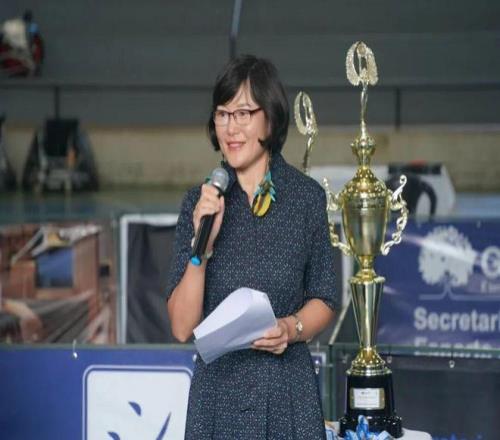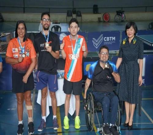 周咏梅代表驻巴西使馆向巴西利亚联邦区乒乓球协会赠送体育用品,并为联邦区年度最佳奥林匹克和残奥俱乐部颁发奖牌。