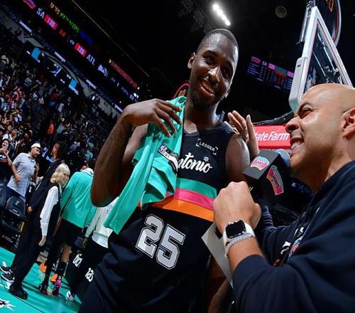本场比赛中,被马刺下放到NBA发展联盟赛场进行锻炼的双向合同后场新星大卫-琼斯-加西亚(David Jones-Garcia)的表现算得上是令人刮目相看。琼斯全场出场33分53秒,投篮18中9,三分线外8中2,罚球9中8,得到了全场最高分33分外加7篮板2助攻1抢断的数据,还有3次失误和2次犯规,正负值为+2。琼斯在进攻端继续大杀四方,展现出了超强的得分能力,他也具备非常丰富的进攻手段,特别是他的突破能力和冲击力,更是秒杀对手的水平。除此之外,琼斯在防守端也是能够保持不错的水准的,同样能够起到一定的作用。值得一提的是,琼斯在比赛第四节拿下11分,不断通过冲击内线给对手制造杀伤,这也是球队能够在竞争激烈的比赛中取得胜利的重要因素。总体来看,琼斯在场上所展现出来的能力确实是要比其他球员强出一大截,他的个人能力确实是相当突出。