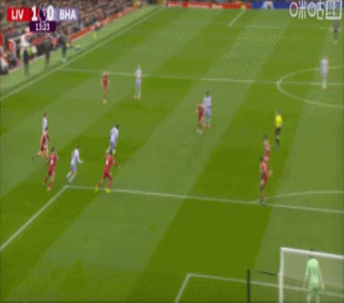 第1分钟,闪电战!埃基蒂克接戈麦斯头球抽射破门,利物浦1-0领先布莱顿!