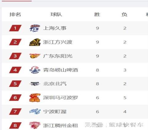 CBA积分榜最新排名出炉!上海掀翻广厦冲上第1:广东第3辽宁第10